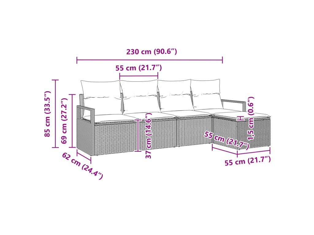 Tato venkovní pohovková souprava přináší moderní eleganci s čistými liniemi a praktickým designem. Vytvořená pro zahrady a terasy spojuje styl s komfortem polyratanových polštářů.