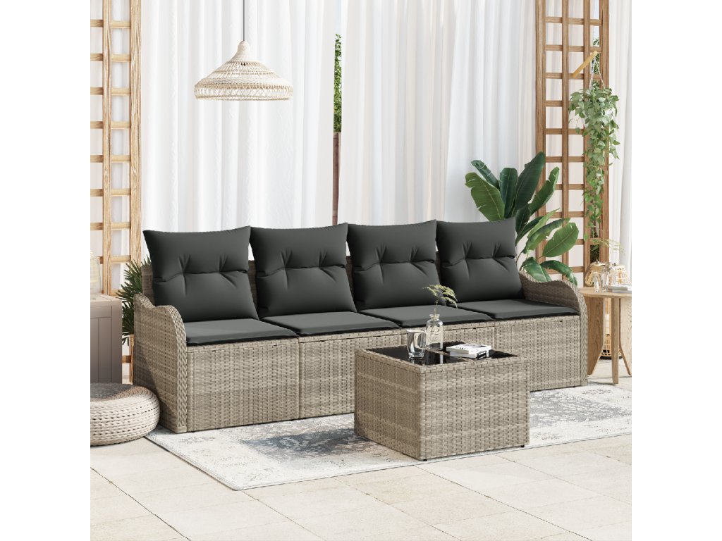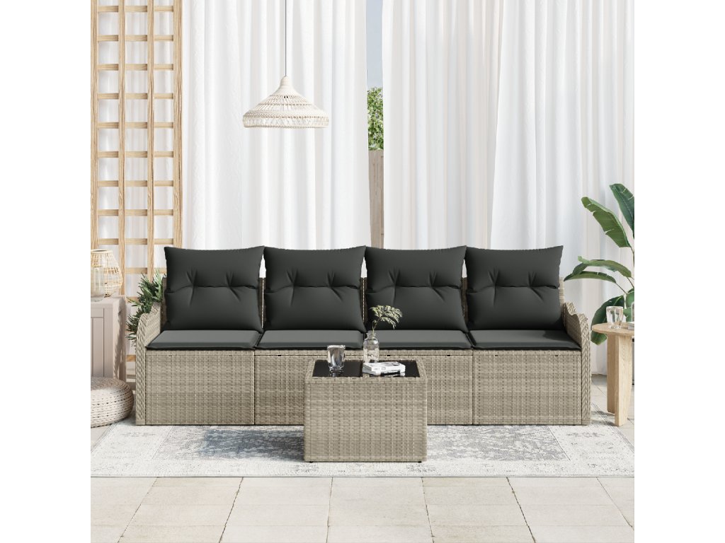 Materiály: Souprava je vyrobená z odolného poly ratanu, který zvládá nepřízeň počasí a vypadá skvěle i za drsných podmínek. S práškově lakovaným ocelovým rámem je stabilní a atraktivní, díky čemuž obohacuje venkovní prostor. Polštáře z polyesteru zajišťují maximální pohodlí. Zahrnuté komponenty: Tato souprava zahrnuje dvě středové sedadla, dvě koncové pohovky a stůl z tvrzeného skla, takže si můžeš sezení uspořádat přesně podle svých představ. Každý kousek se skvěle doplňuje, takže tvoje venkovní prostor vypadá konzistentně. Hotový a elegantní zadní panel dává možnost flexibilního uspořádání bez kompromisů v designu. Vlastnosti / Funkce / Design: Užívej si pohodlí modulárního designu, který ti umožní měnit uspořádání podle potřeby. Lehká konstrukce je ideální pro přeuspořádání, zatímco UV odolné materiály ti zajistí dlouhou životnost. Každý kousek této soupravy skvěle kombinuje styl a praktičnost. Doporučené použití: Ideální pro zahrady a terasy, tahle pohovka dodá elegance a pohodlí tvému venkovnímu prostředí. Ať už jde o klidný večer nebo livé setkání s kamarády, souprava se ti přizpůsobí a vytvoří skvělé atmosféru, jak pro společenské události, tak pro odpočinek. Údržba a péče: O tento nábytek se jednoduše postaráš otřením vlhkým hadříkem. Doporučuje se chránit ho krytem, když se používá, aby si ho dlouho udržel v dobrém stavu a čistý vzhled, čímž zvýšíš jeho životnost a potěšení při používání.- Barva: Světle šedá