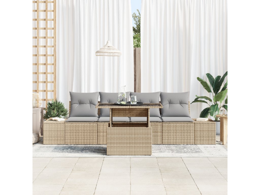 Set pohovek s polštářem 5 pcs Béžová a Světle šedá polyratan