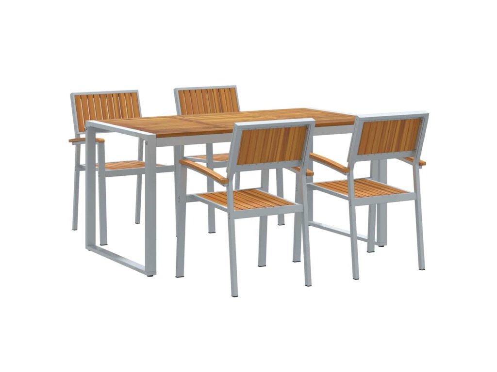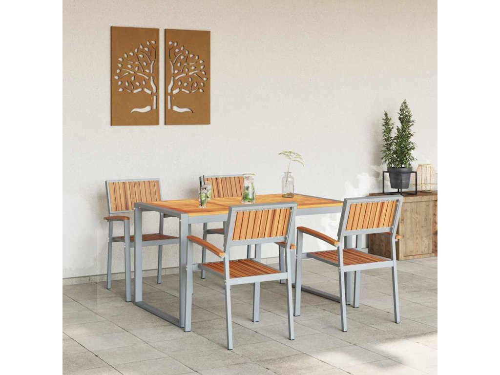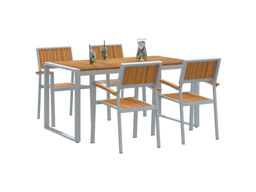 - Odolný design: Masivní akáciové dřevo a ocelový rám dělají z tohoto setu silnou a dlouhotrvající volbu. Tato kombinace dodává nejen sílu, ale i trochu rustikálního kouzla, která spojuje moderní styl a užitečnost. A materiály potřebují minimální údržbu, takže si užijete spoustu bezstarostných chvil.