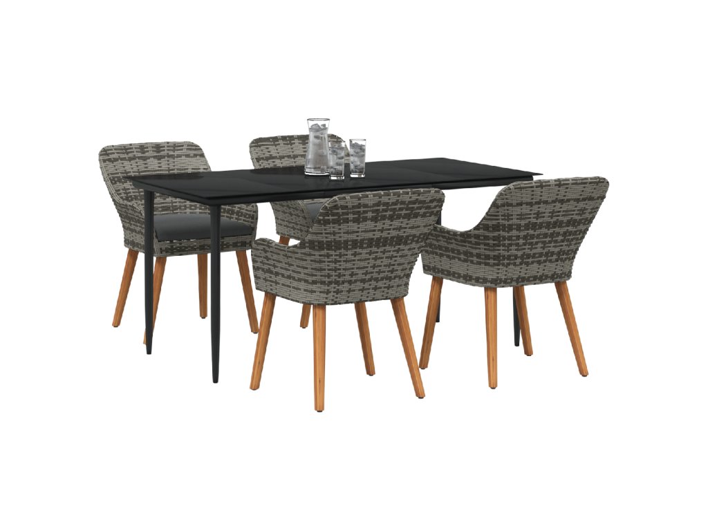 Zahradní jídelní souprava s polštářem 5 pcs Šedá polyratan