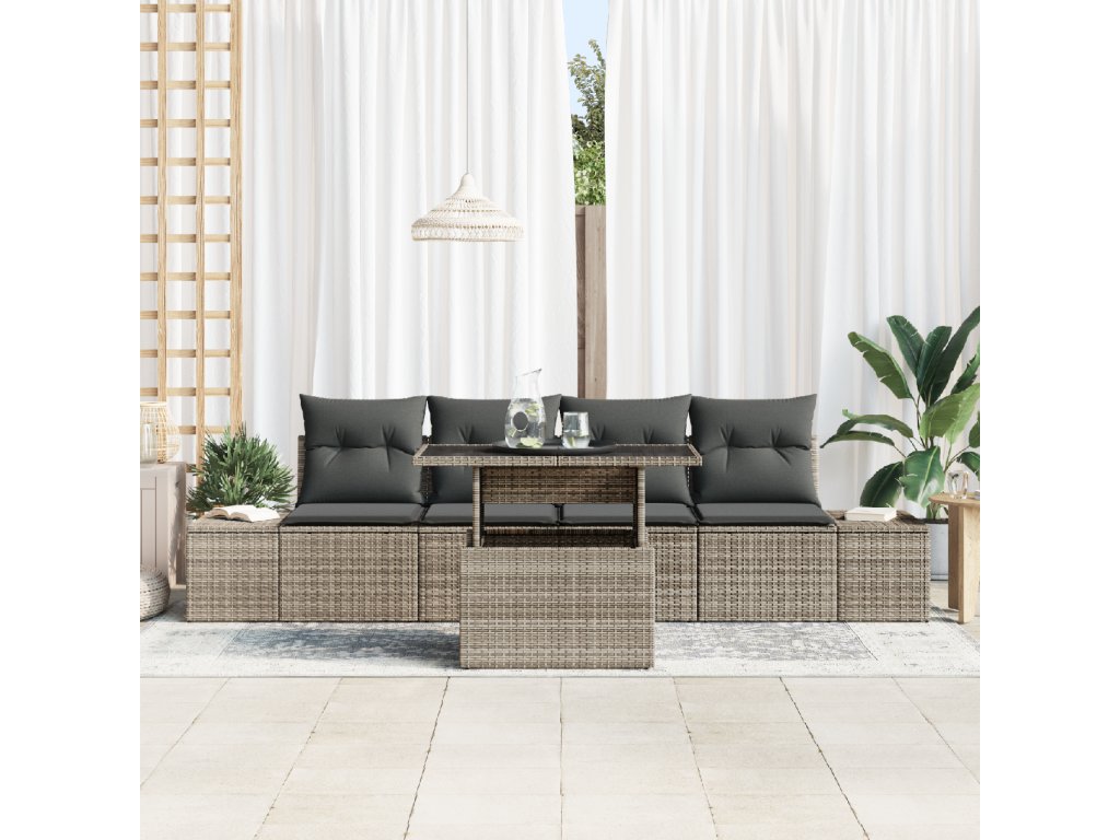 Tento elegantní zahradní set pohovek skvěle kombinuje funkčnost a styl. Je navržen tak, aby zvýšil estetiku vašeho venkovního prostoru. Jeho moderní design a čisté linie přidávají na sofistikovanosti. Určen pro lidi, kteří mají rádi flexibilitu, skvěle se hodí na různé akce – od relaxačních chvílí u kávy až po slavnostní večeře s přáteli.