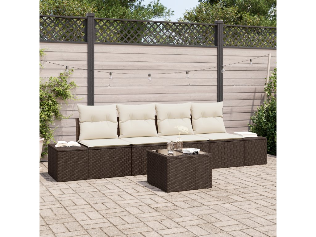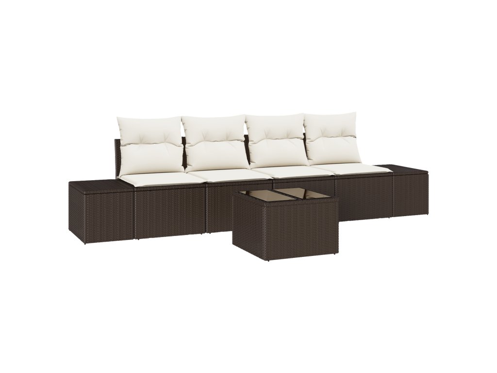 Set pohovek s polštářem 5 pcs Hnědá a krémová polyratan