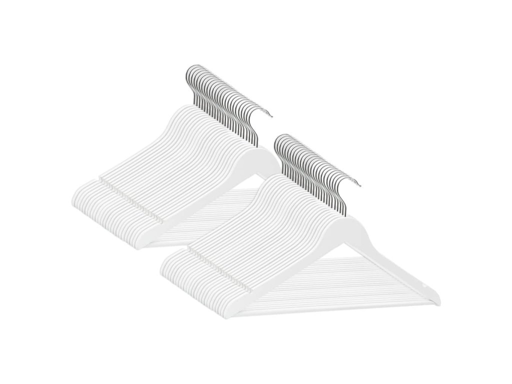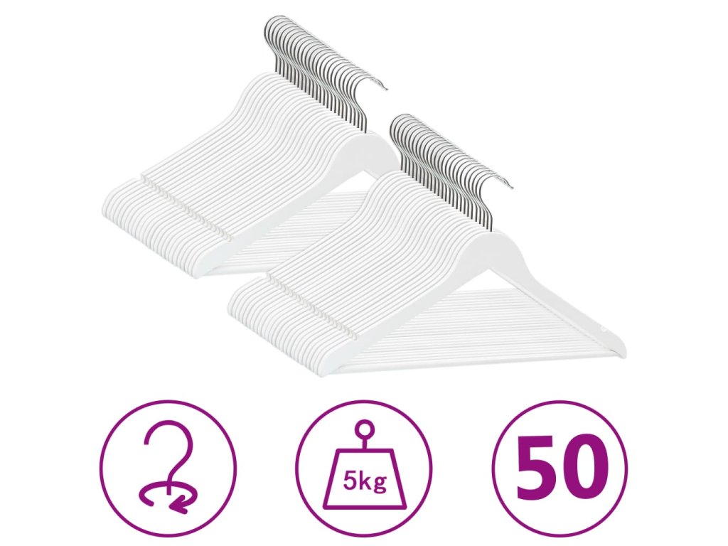 50 ks šatních ramínek protiskluzové bílé tvrdé dřevo