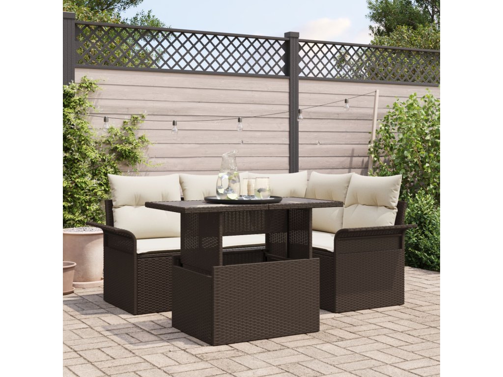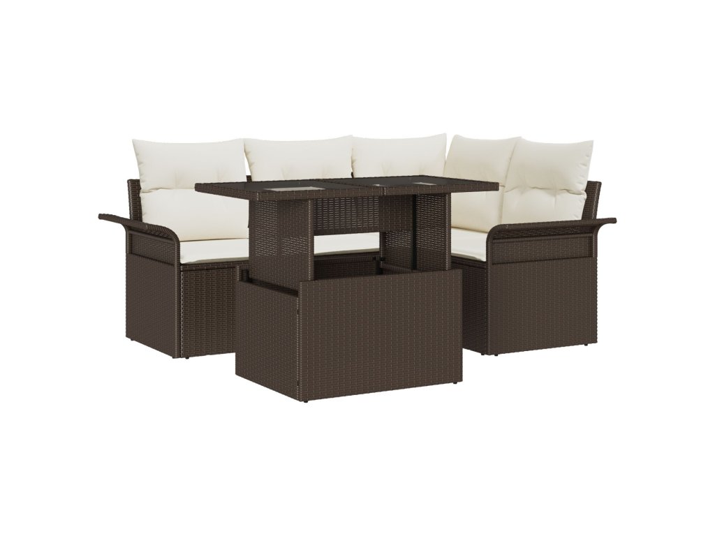 Sada zahradních pohovek s polštářem 5 pcs Hnědá Poly ratan
