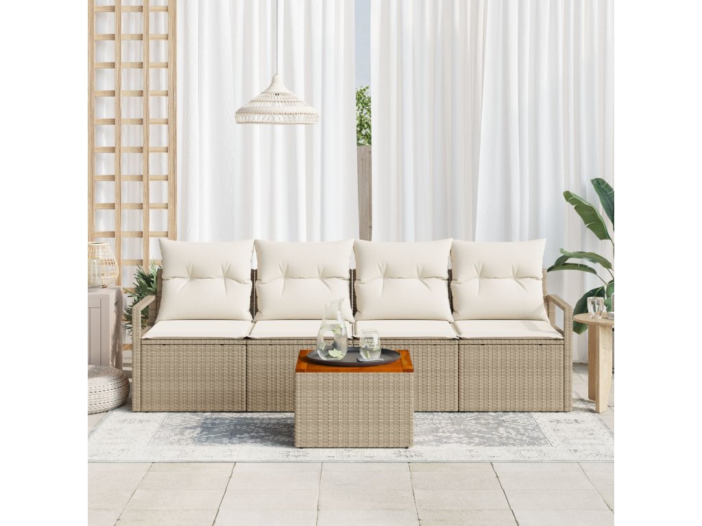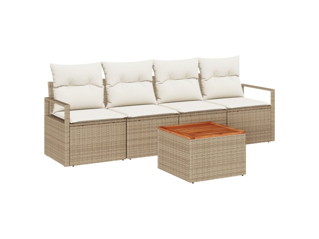 Sada zahradních pohovek s polštářem 5 pcs Béžová Poly ratan