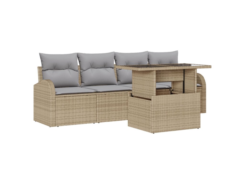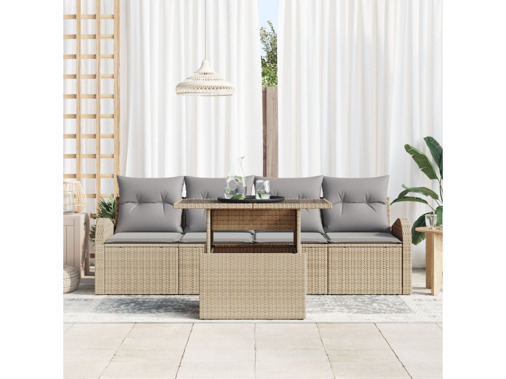 Sada zahradních pohovek s polštářem 5 pcs Béžová Poly ratan