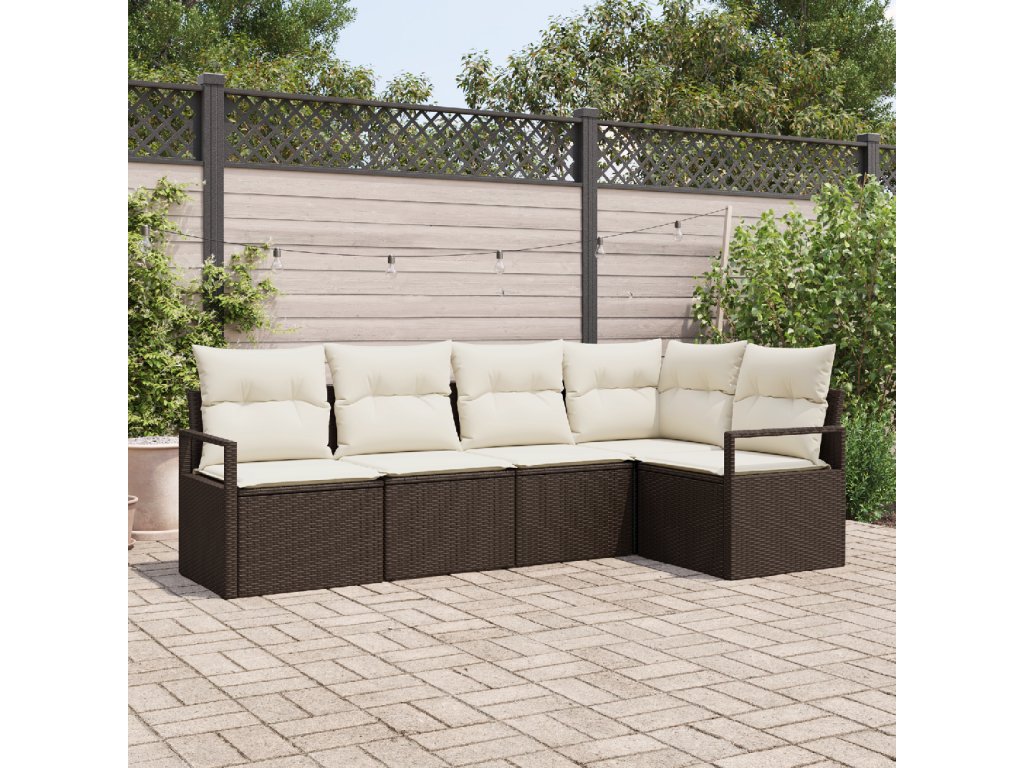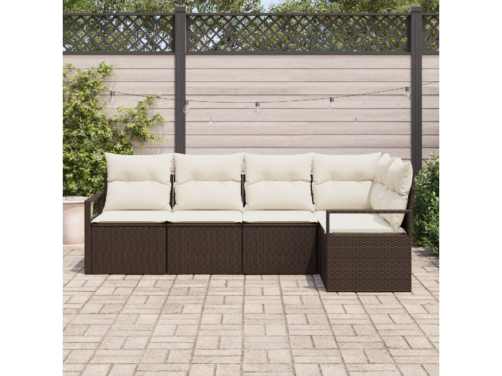 Set pohovek s polštářem 5 pcs Hnědá polyratan