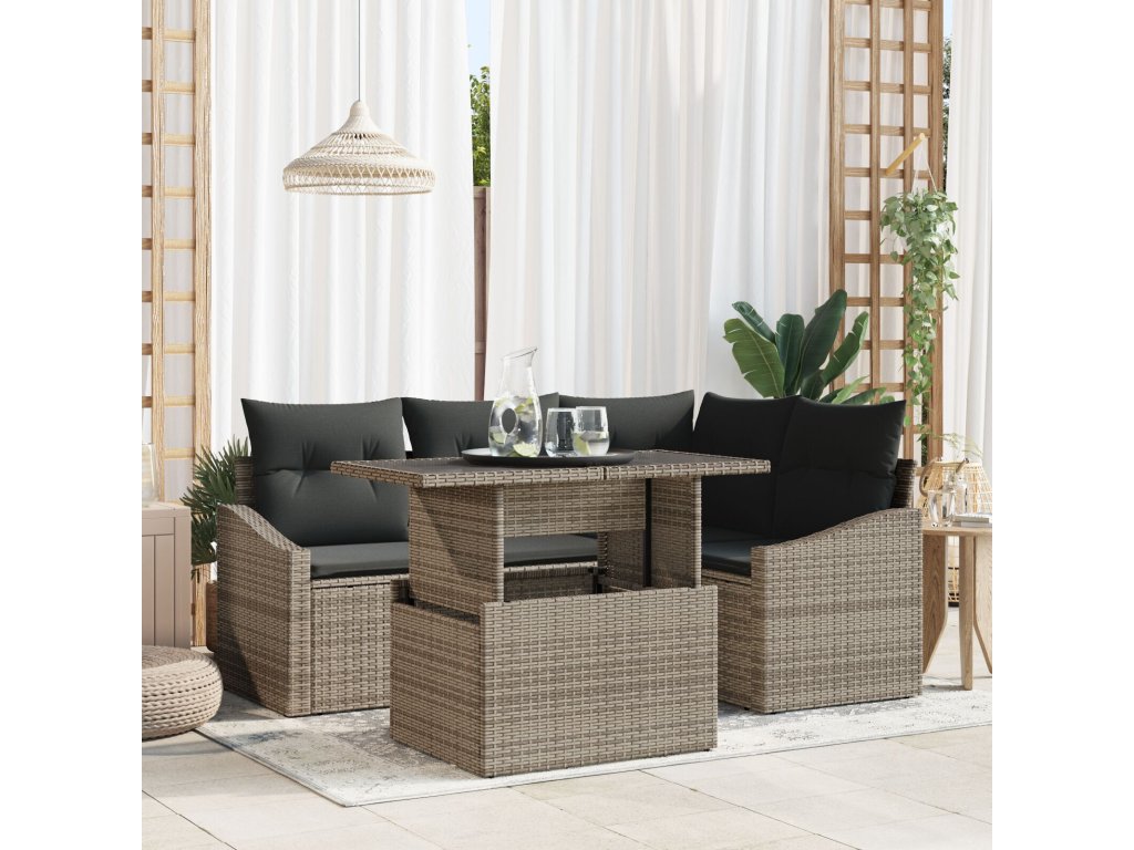 Sada zahradních pohovek s polštářem 5 pcs Šedá polyratan