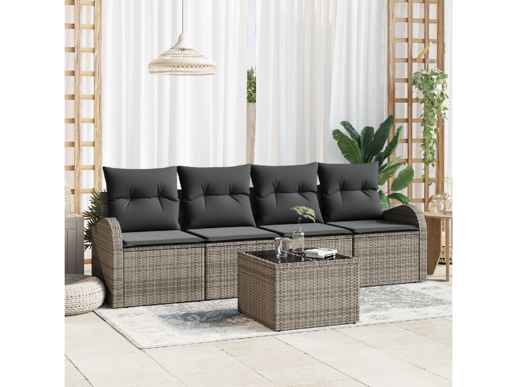 Sada zahradních pohovek 5 pcs Šedá Polyratan a ocel a sklo