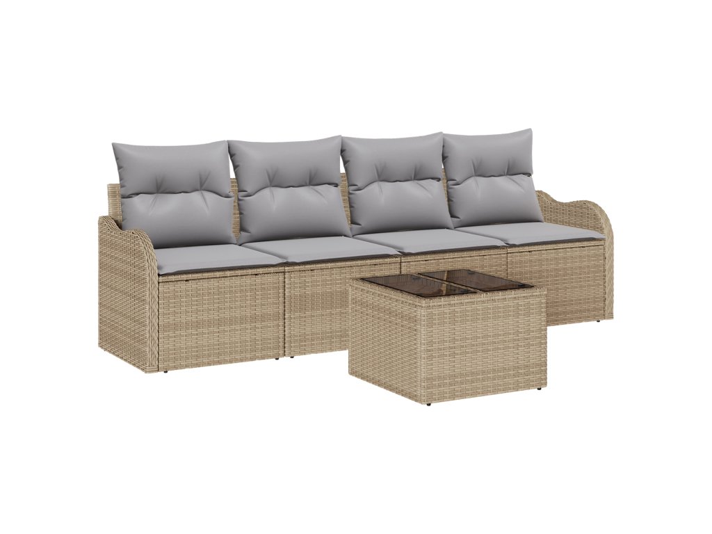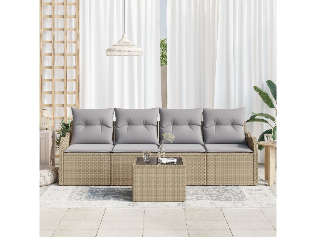 Materiály: Souprava je vyrobená z odolného poly ratanu, který zvládá nepřízeň počasí a vypadá skvěle i za drsných podmínek. S práškově lakovaným ocelovým rámem je stabilní a atraktivní, díky čemuž obohacuje venkovní prostor. Polštáře z polyesteru zajišťují maximální pohodlí. Zahrnuté komponenty: Tato souprava zahrnuje dvě středové sedadla, dvě koncové pohovky a stůl z tvrzeného skla, takže si můžeš sezení uspořádat přesně podle svých představ. Každý kousek se skvěle doplňuje, takže tvoje venkovní prostor vypadá konzistentně. Hotový a elegantní zadní panel dává možnost flexibilního uspořádání bez kompromisů v designu. Vlastnosti / Funkce / Design: Užívej si pohodlí modulárního designu, který ti umožní měnit uspořádání podle potřeby. Lehká konstrukce je ideální pro přeuspořádání, zatímco UV odolné materiály ti zajistí dlouhou životnost. Každý kousek této soupravy skvěle kombinuje styl a praktičnost. Doporučené použití: Ideální pro zahrady a terasy, tahle pohovka dodá elegance a pohodlí tvému venkovnímu prostředí. Ať už jde o klidný večer nebo livé setkání s kamarády, souprava se ti přizpůsobí a vytvoří skvělé atmosféru, jak pro společenské události, tak pro odpočinek. Údržba a péče: O tento nábytek se jednoduše postaráš otřením vlhkým hadříkem. Doporučuje se chránit ho krytem, když se používá, aby si ho dlouho udržel v dobrém stavu a čistý vzhled, čímž zvýšíš jeho životnost a potěšení při používání.- Barva: Béžová