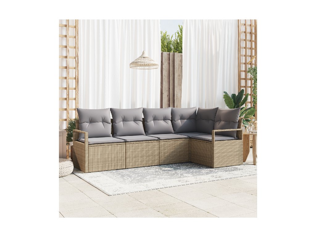 Set pohovek s polštářem 5 pcs Béžová polyratan