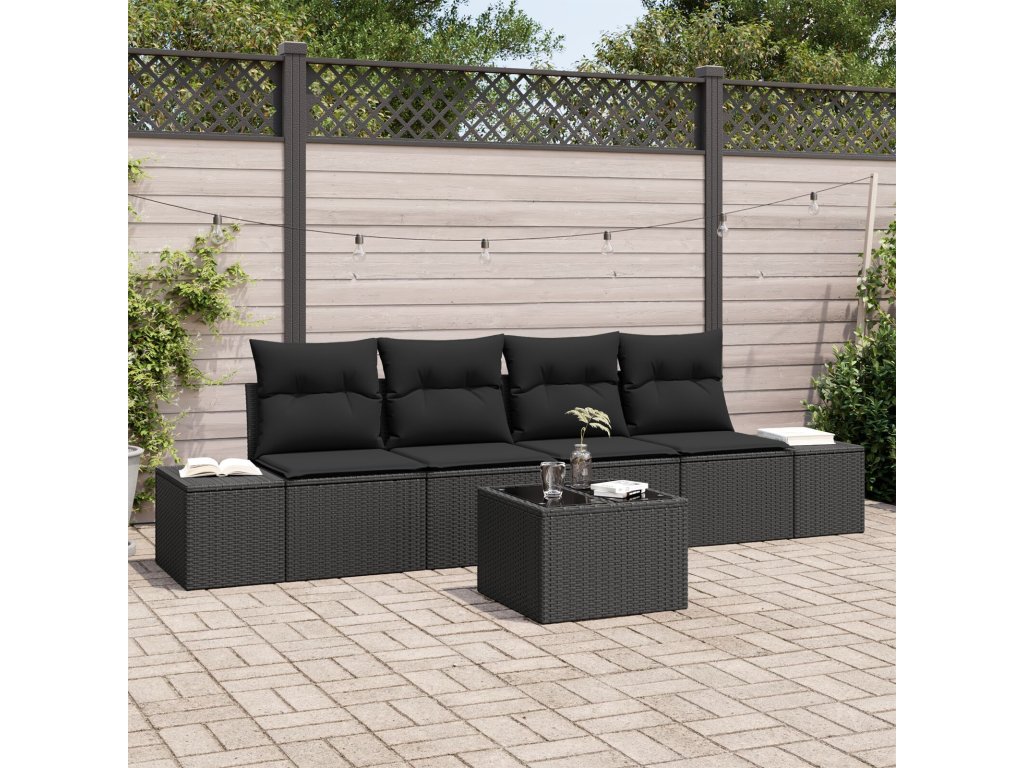 Set pohovek s polštářem s polštářem 5 pcs Černá polyratan