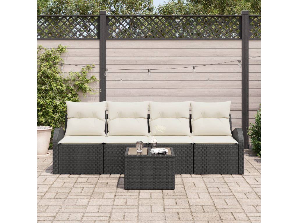 Sada zahradních pohovek s polštářem 5 pcs Černá a krémová