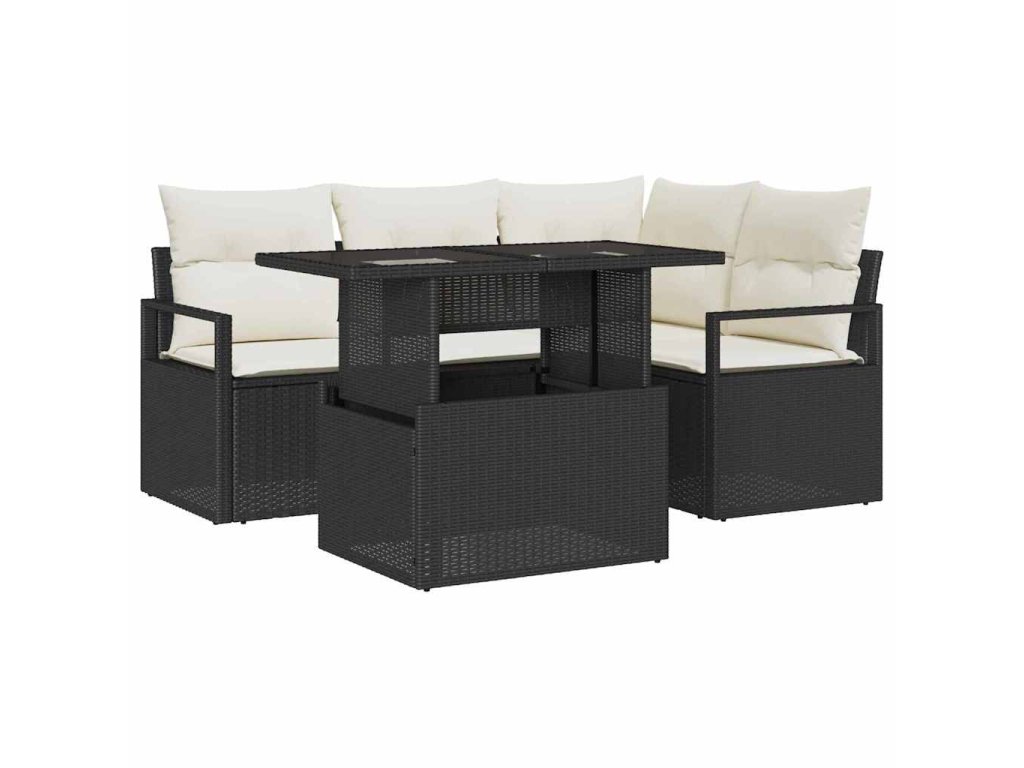Sada zahradních pohovek s úložištěm 5 pcs Černá Poly ratan