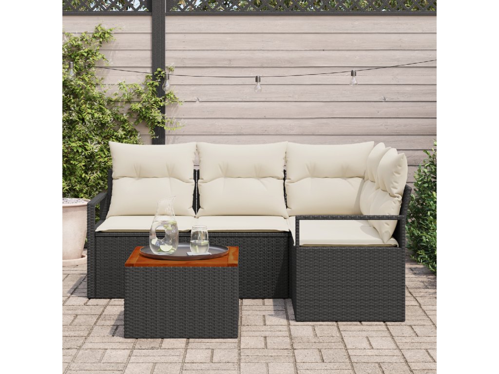 Sada zahradních pohovek s polštářem 5 pcs Černá Poly ratan