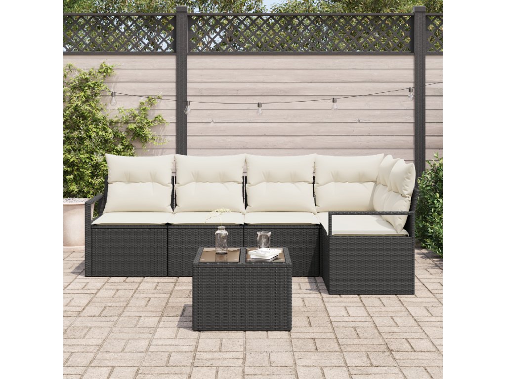 Sada zahradních pohovek 6 pcs Černá Poly ratan