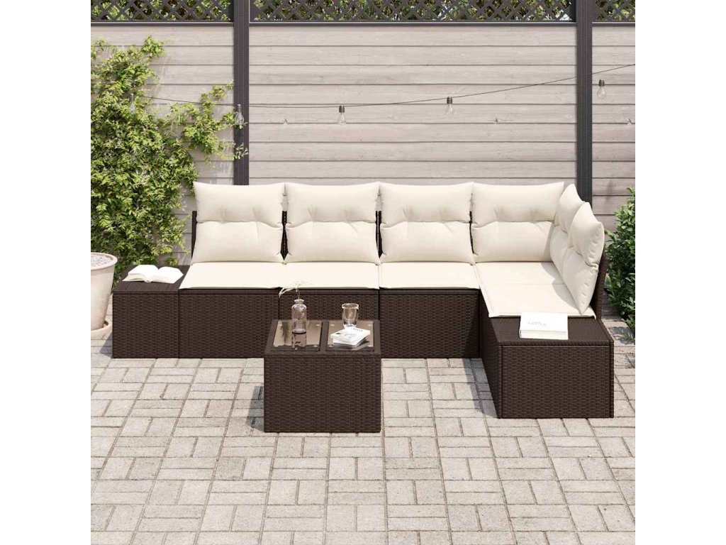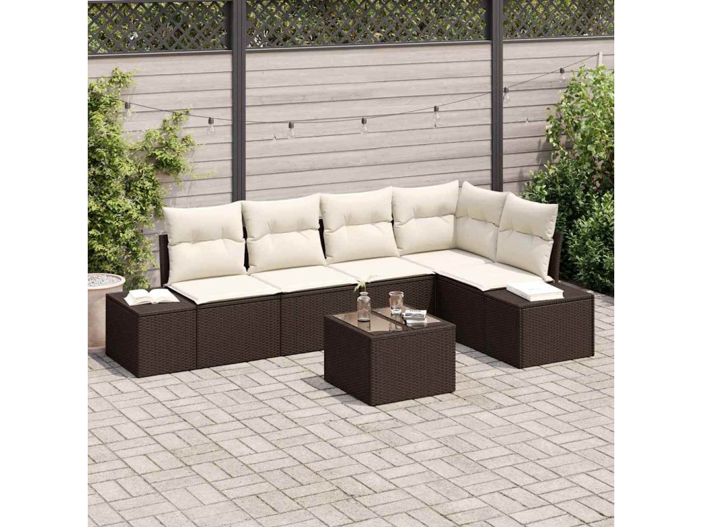 Sada zahradních pohovek s polštářem 6 pcs Hnědá a krémová