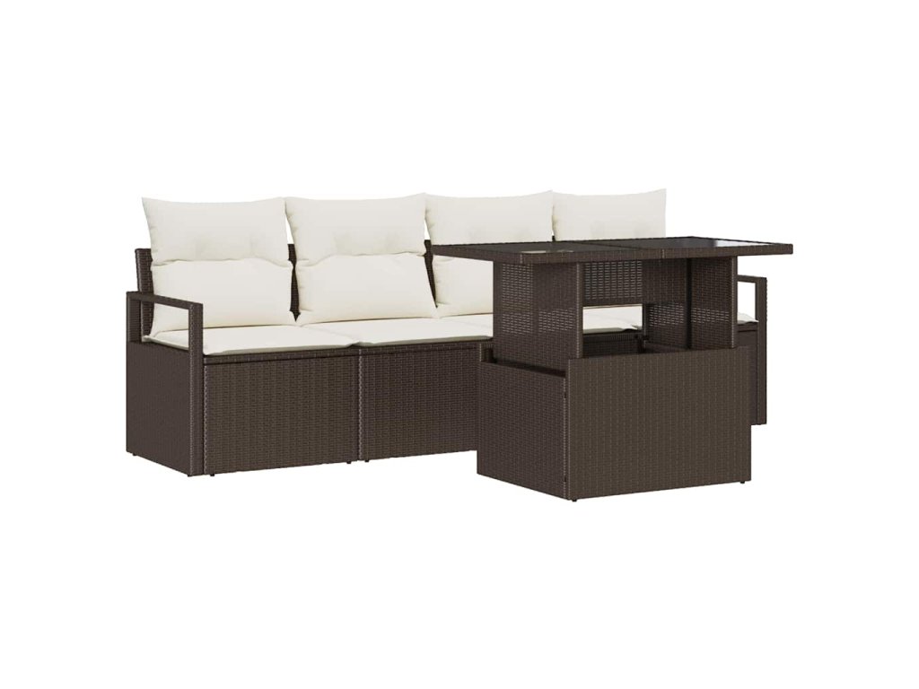 Sada zahradních pohovek s úložištěm 5 pcs Hnědá Poly ratan