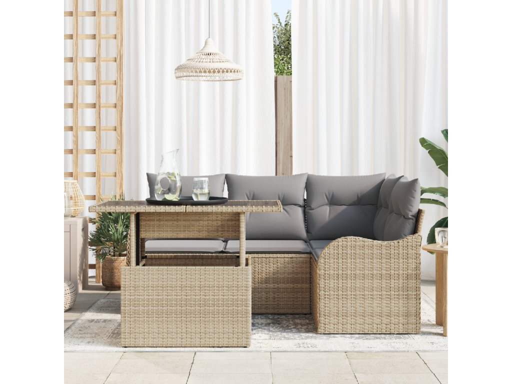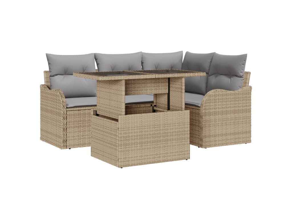 Zahradní jídelní sada s polštářem 5 pcs Béžová Poly ratan