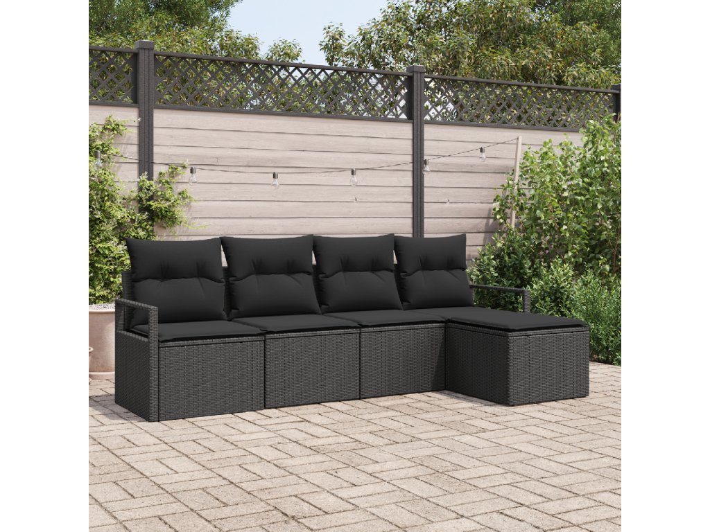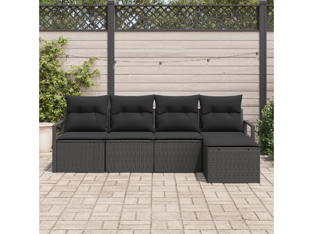 Set pohovek s polštářem s úložištěm 5 pcs Černá polyratan