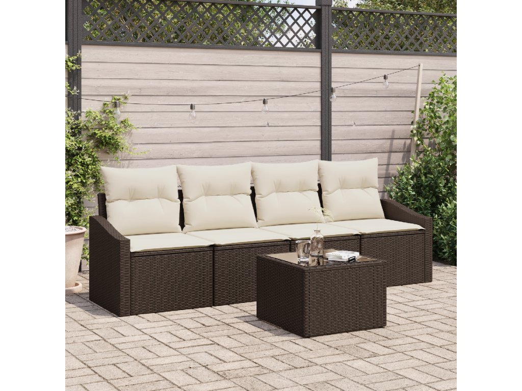 Set pohovek s polštářem 5 pcs Hnědá a krémová polyratan
