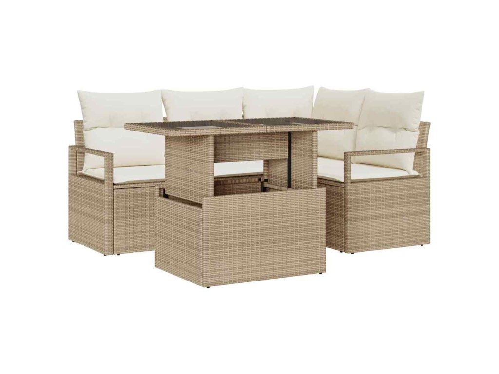 Sada zahradních pohovek s úložištěm 5 pcs Béžová Poly ratan