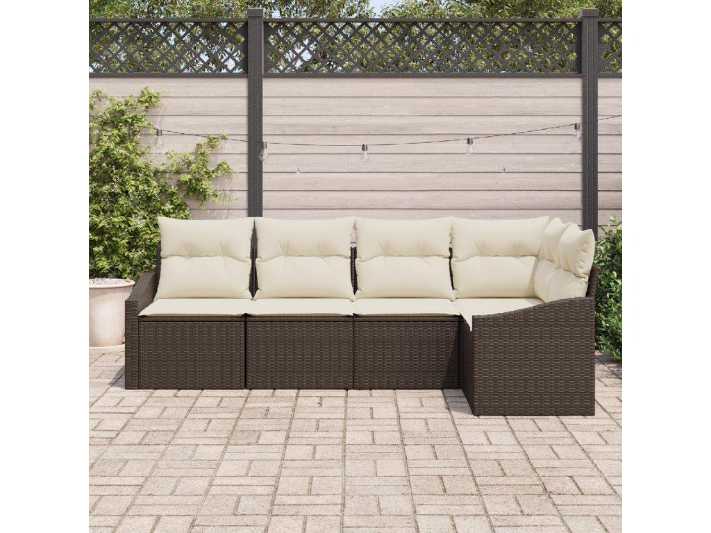 Set pohovek s polštářem 5 pcs Hnědá a krémová polyratan