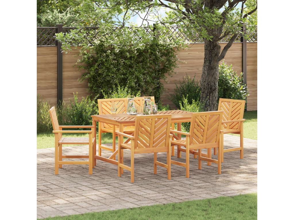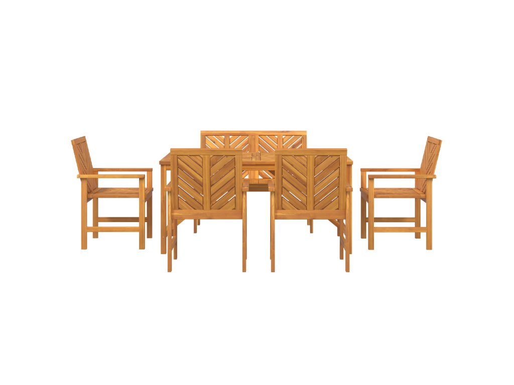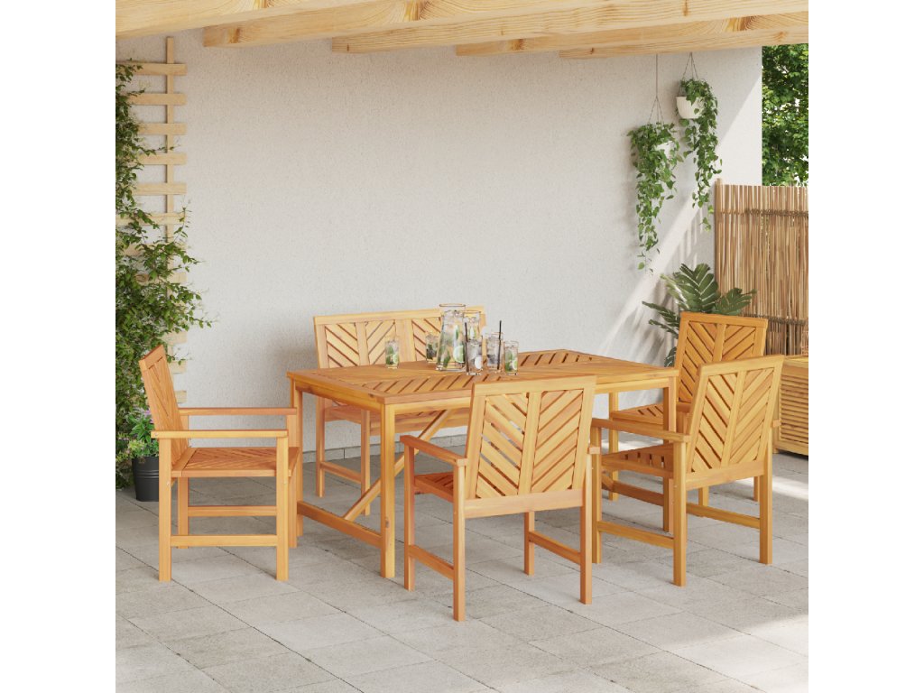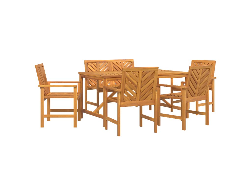 - Kvalitní materiály: Vyrobeno z masivního akáciového dřeva, tenhle set je pevný a vypadá skvěle. Akácie je známá svojí krásnou strukturou a zvládá různé venkovní podmínky, což ji dělá ideální pro každodenní používání. Tento materiál dodává rustikální nádech, ale je dostatečně odolný pro venkovní využití.