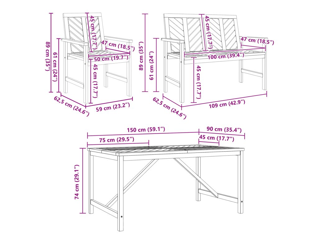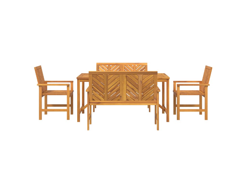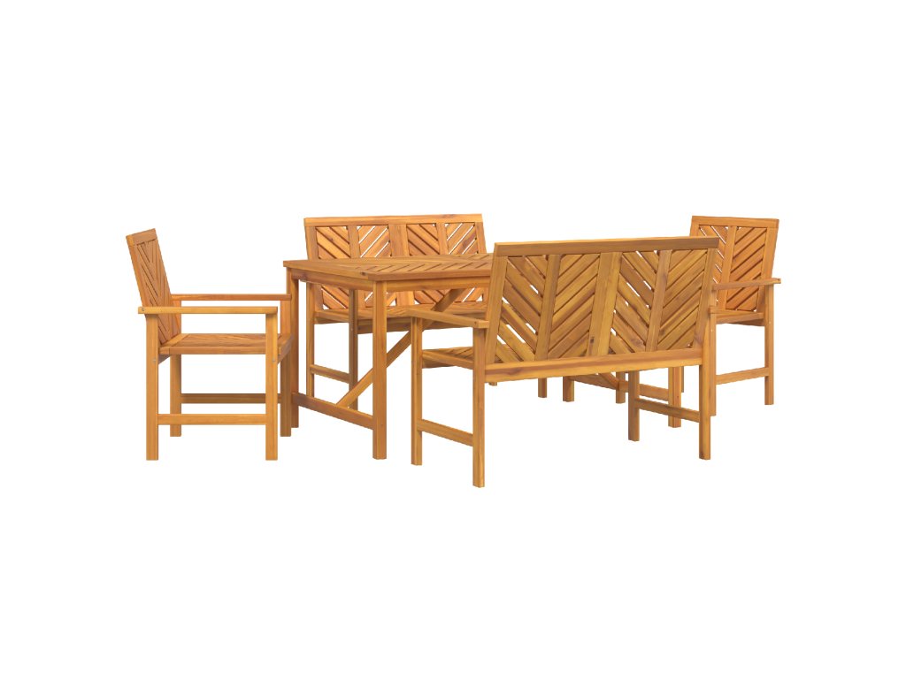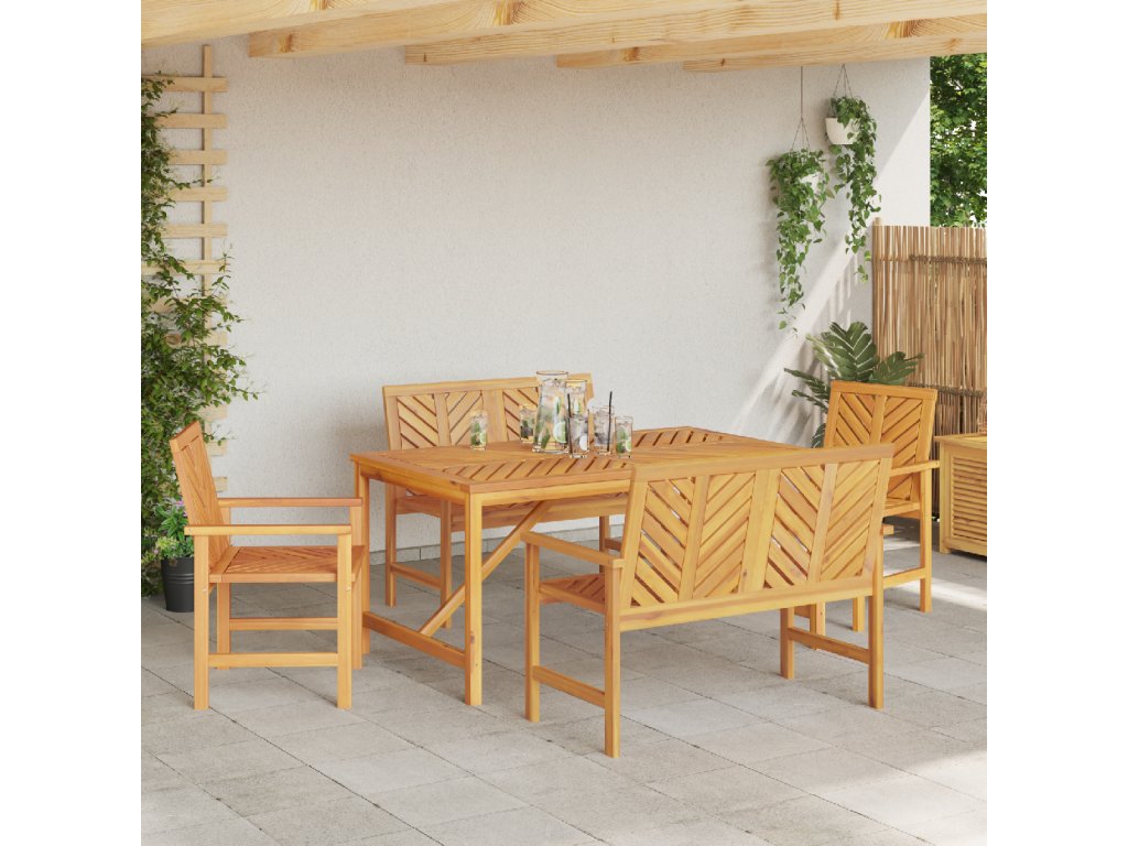 - Kvalitní materiály: Vyrobeno z masivního akáciového dřeva, tenhle set je pevný a vypadá skvěle. Akácie je známá svojí krásnou strukturou a zvládá různé venkovní podmínky, což ji dělá ideální pro každodenní používání. Tento materiál dodává rustikální nádech, ale je dostatečně odolný pro venkovní využití.