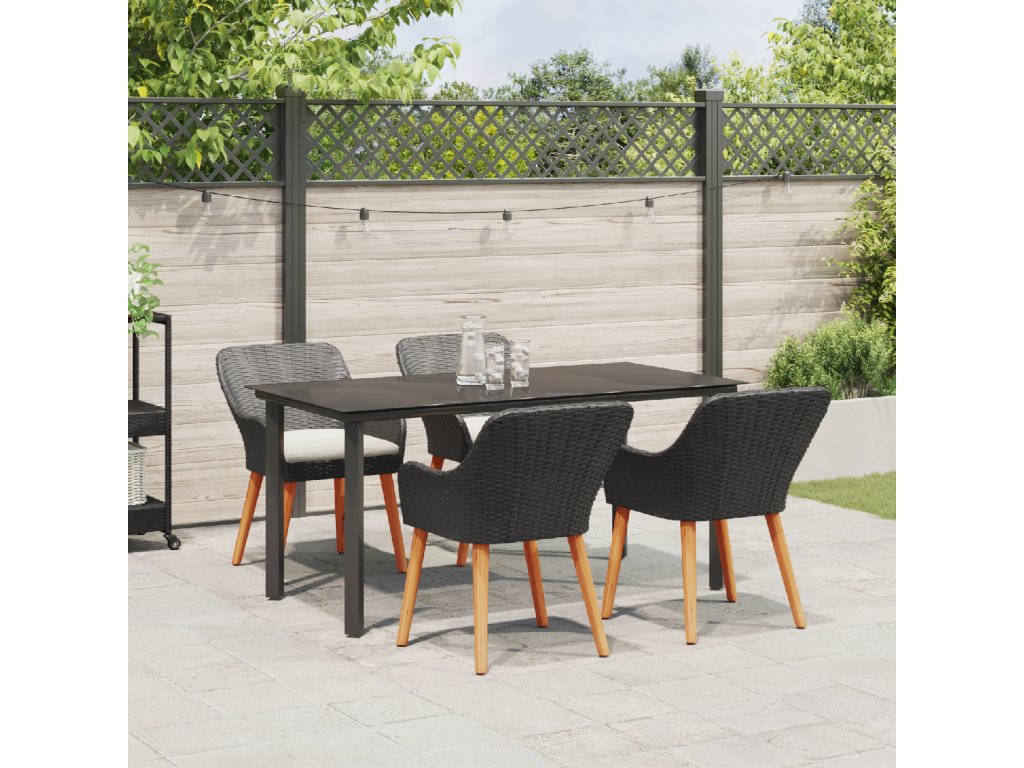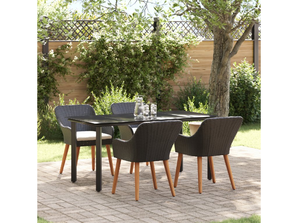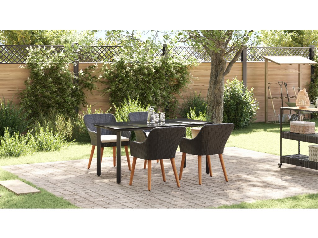 Odolné materiály: Díky kvalitnímu poly ratan a silný oceli, tato sada vydrží všechno, suitable for co počasí přinese po celý rok. Je navržená tak, aby odolávala dešti, UV paprskům a opotřebení, takže ji můžeš bez obav používat na venkovní akce. Můžeš se na ní spolehnout, že bude stabilní a bude vypadat skvěle i po mnoha posezení. UV-odolná kvalita: Tato sada má UV-odolné materiály, které ji udržují stále pěknou a silnou, brání vyblednutí na slunci. Takže vždycky bude vypadat skvěle a váš venkovní prostor zůstane čerstvej bez ohledu na roční období. Elegantní design stolu: Mrkni na skvělej patio stůl s elegantním skleněným povrchem. Snadno se čistí a vypadá skvěle, spojuje styl s praktičností, takže venkovní stolování je radost. Pohodlné sezení: Tato jídelní sada obsahuje příjemný polštáře na sezení, které mají praktické zipy, což dělá dlouhá jídla venku bezproblémový. Poly ratanový židle ne jenom dobře vypadají, ale taky jsou pohodlný, ideální na lenošení v letních dnech. Údržba a péče: Aby vaše sada zůstala v top stavu, používejte kryty, když není v provozu. To ji chrání před nepříznivým počasím a pomáhá jí dlouho vydržet. Navíc je snadná na údržbu, takže se můžeš soustředit na užívání si prostoru vaší zahrady.- Barva: Černá