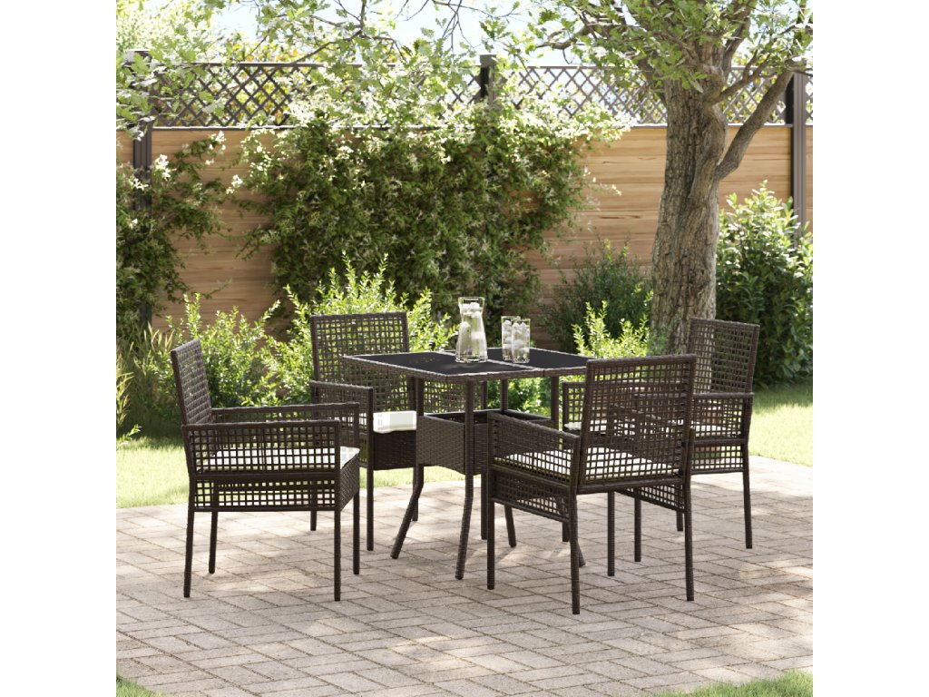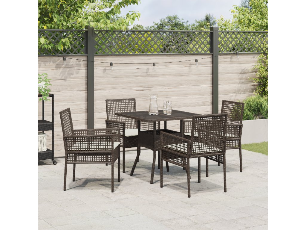 Odolný polyratan: Tato jídelní souprava je vyrobená tak, aby vydržela. Díky pevnému polyratanu je odolná vůči UV záření a vlhkosti, takže se nemusíte bát, že se poškodí, i když je špatné počasí. Je perfektní pro venkovní použití. Odolnost vůči počasí: Zahradní jídelní souprava zvládne přírodní živly, takže stále vypadá dobře po dešti nebo slunci. Můžete ji nechat venku bez strachu, že se zničí – bude ve skvělé kondici. Stylový design: Tato jídelní souprava mixuje moderní prvky s elegantním vzhledem, což ji dělá skvělým doplňkem vaší zahrady. Příjemná textura polyratanu se hodí do venkovního stylu a poskytuje příjemné místo pro jídlo a zábavu. Praktická funkčnost: Navrženo pro odpočinek venku, jídelní souprava zahrnuje prostorný stůl a pohodlná sedadla. Je perfektní pro pohodové stravování. Oslovuje skvělý vzhled a praktičnost, s cílem na jednoduchost a radost. Snadná montáž: Sestavení je jednoduché, takže můžete rychle začít užívat. Všechno potřebné tam je, což montáž usnadní pro každého.- Barva: Hnědá