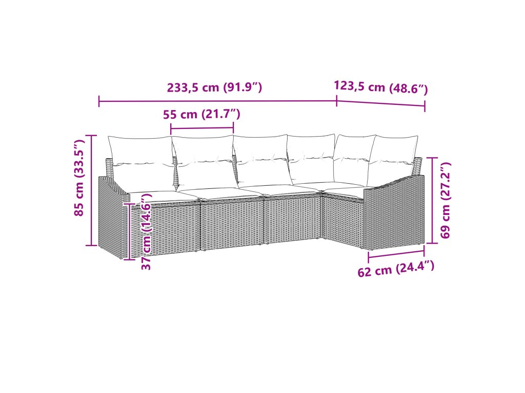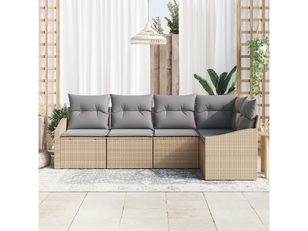 Set pohovek s polštářem 5 pcs Béžová a Světle šedá polyratan