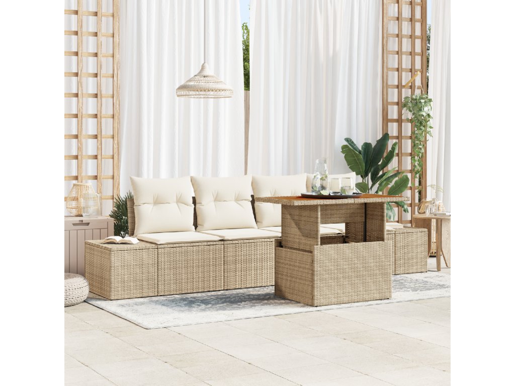 Zahradní jídelní souprava s polštářem 5 pcs Béžová a krémová