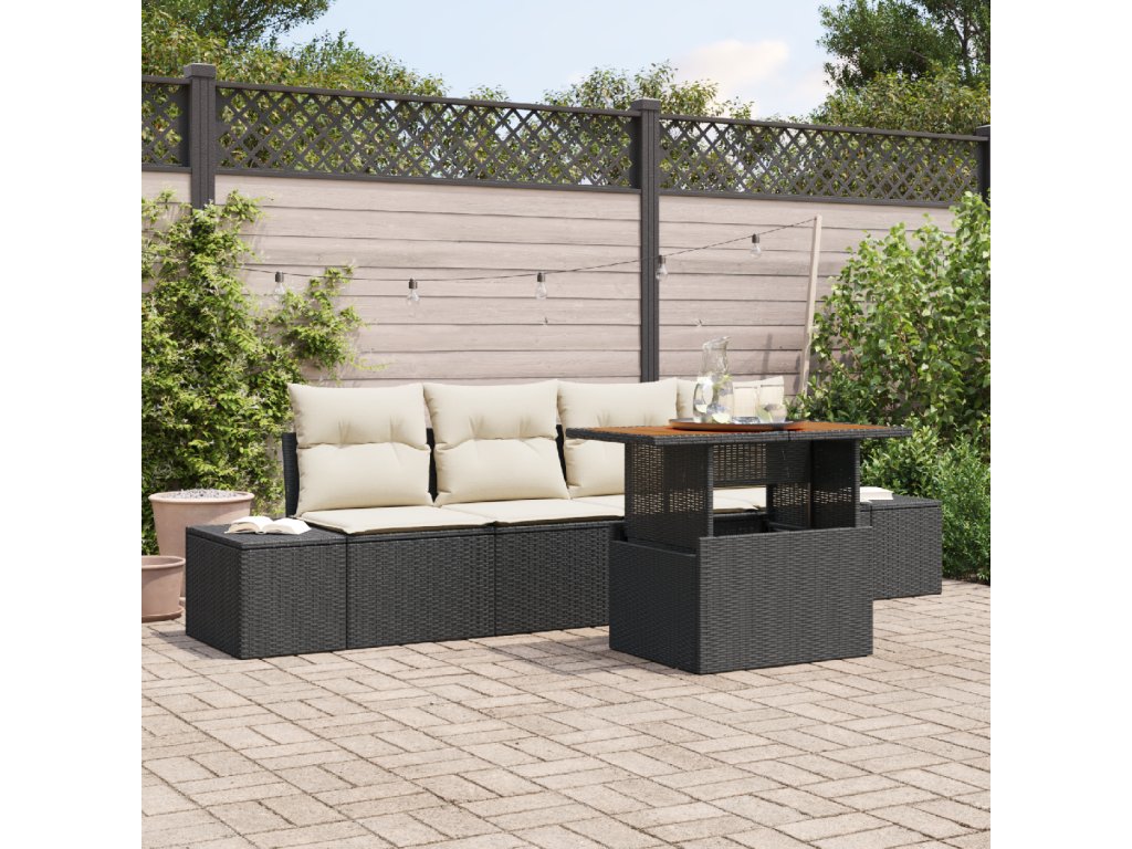 Zahradní jídelní souprava s polštářem 5 pcs Černá a krémová