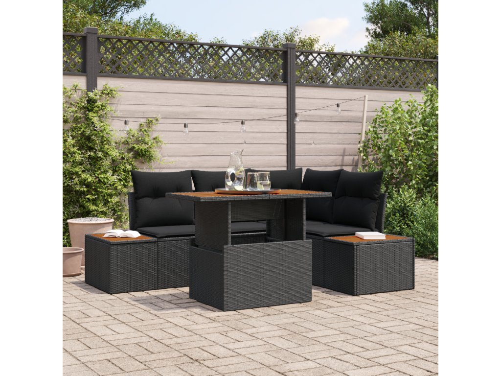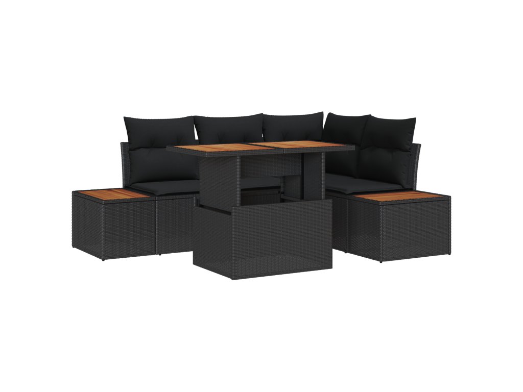 Špičkové materiály: Je vyrobený z polyratanu, práškově lakované oceli a masivního akáciového dřeva, takže je připravený na venkovní použití. Tyhle materiály dodávají super pevnost a pěkný vzhled, což zajistí dlouhou životnost. Co je součástí: Set věrně obsahuje dvě boční sofa, rohové křeslo, středové křeslo a zahradní stůl. Každý kus má úložný prostor, což je praktické. Super funkce: S nastavitelnou výškou stolu a modulárním designem si to můžeš nastavit podle sebe. Čtvercové opěrky na ruce a úhledný zadní díl ti zaručují pohodlí a hezký vzhled. Nejlepší pro: Ideální do zahrad a na terasy, tenhle flexibilní set se hodí pro setkání nebo prostě pro chillování. UV-odolné materiály chrání před slunečním poškozením. Jak to udržet v dobrém stavu: Aby set vypadal pořád skvěle, používej kryt, když ho nepoužíváš, a přinášej polštáře dovnitř, když se počasí zhorší. Tato snadná údržba ti zajistí funkčnost a krásu na dlouho.- Barva: Černá a hnědá