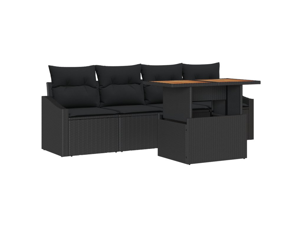 Sada zahradních pohovek s polštářem 5 pcs Černá Poly ratan
