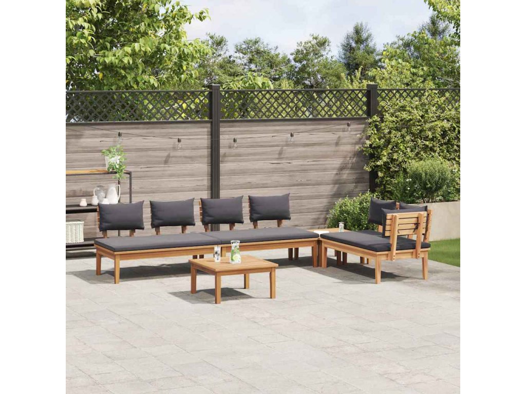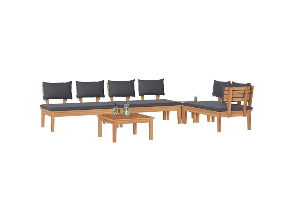 Sada zahradních laviček s polštářem 5 pcs Hnědá a šedá