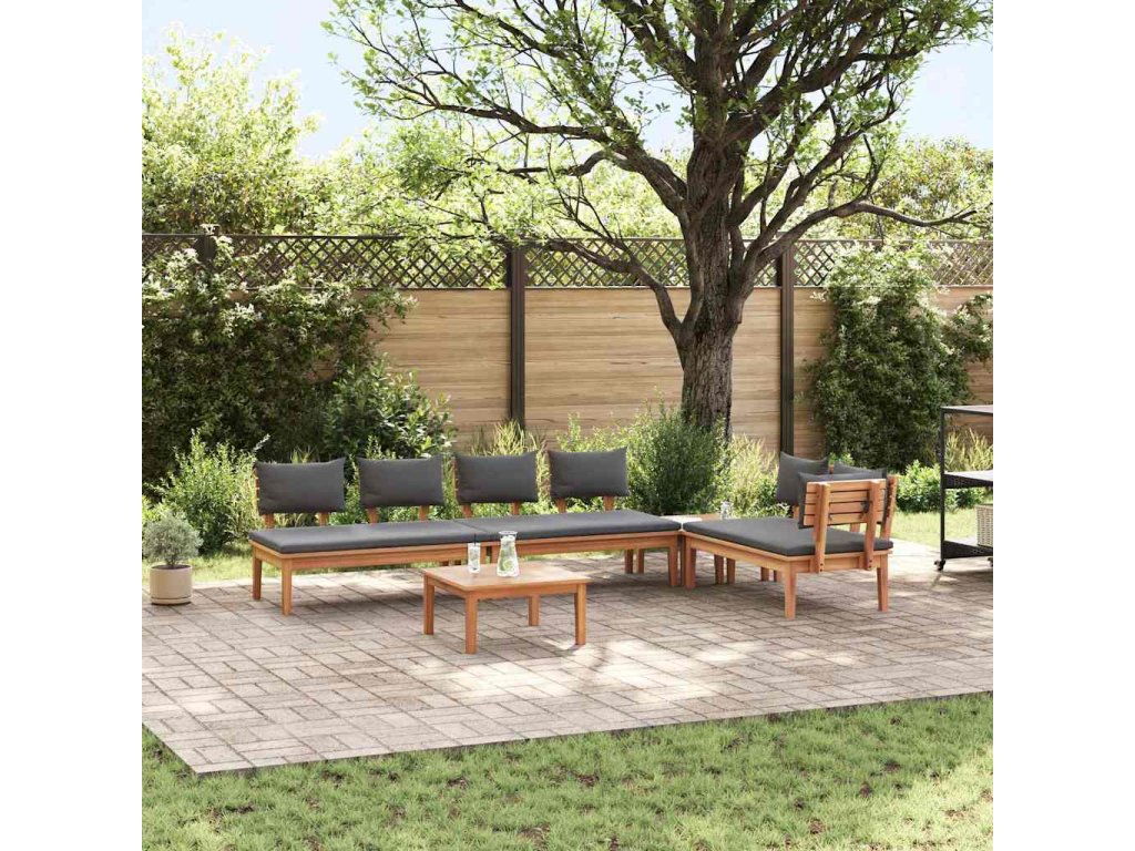 - Materiály: Tato sada spojuje krásný masivní teak na rámu a zádech s praktickými polyesterovými polštáři, což ji dělá atraktivní a funkční. Bohatá textura dřeva dodává každému venkovnímu prostoru elegantní nádech, zatímco polyester je odolný vůči různým povětrnostním podmínkám.
