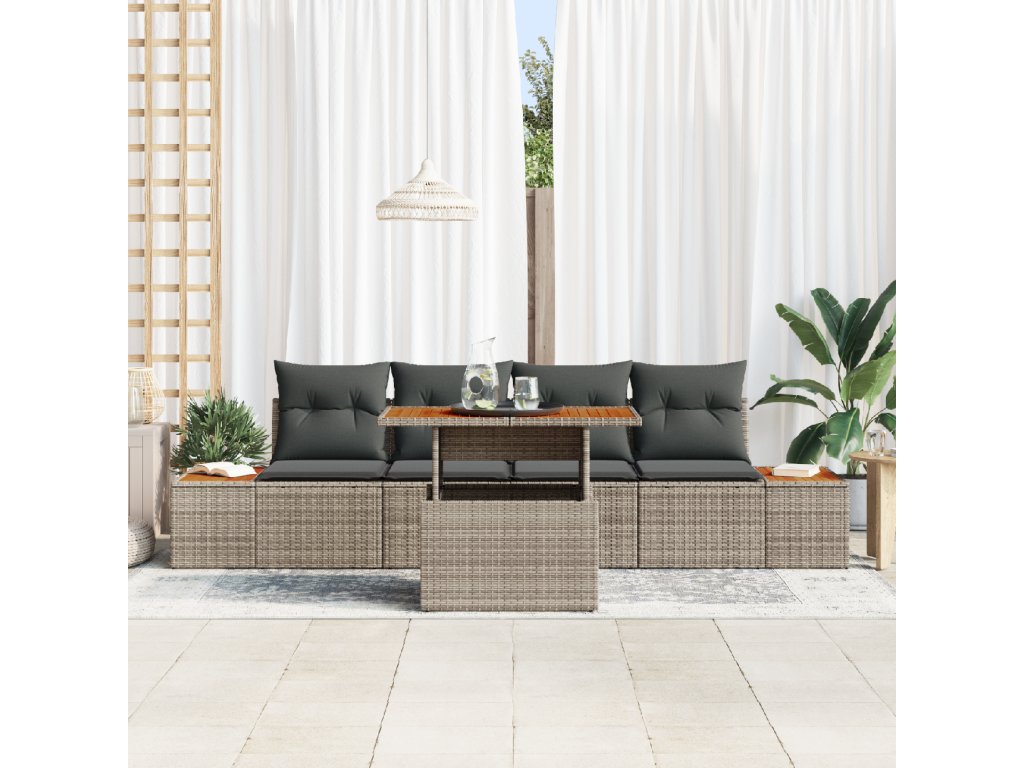 Tento elegantní zahradní jídelní set z polyratanu je navržen tak, aby proměnil váš venkovní prostor na moderní a vstřícný ráj. Nabízí dokonalou kombinaci moderního stylu a vynikající funkčnosti, tento set se snadno přizpůsobí jakémukoli zahradnímu nebo terasovému prostředí. Jeho čisté linie a modulární design umožňují všestranné možnosti rozložení, což jej činí ideálním pro stravování, zábavu nebo prostě relaxaci ve stylu. Vytvořen pro ty, kdo oceňují decentní eleganci, tento set zavádí funkční a zároveň sofistikovanou atmosféru, aby vylepšil váš venkovní životní zážitek.