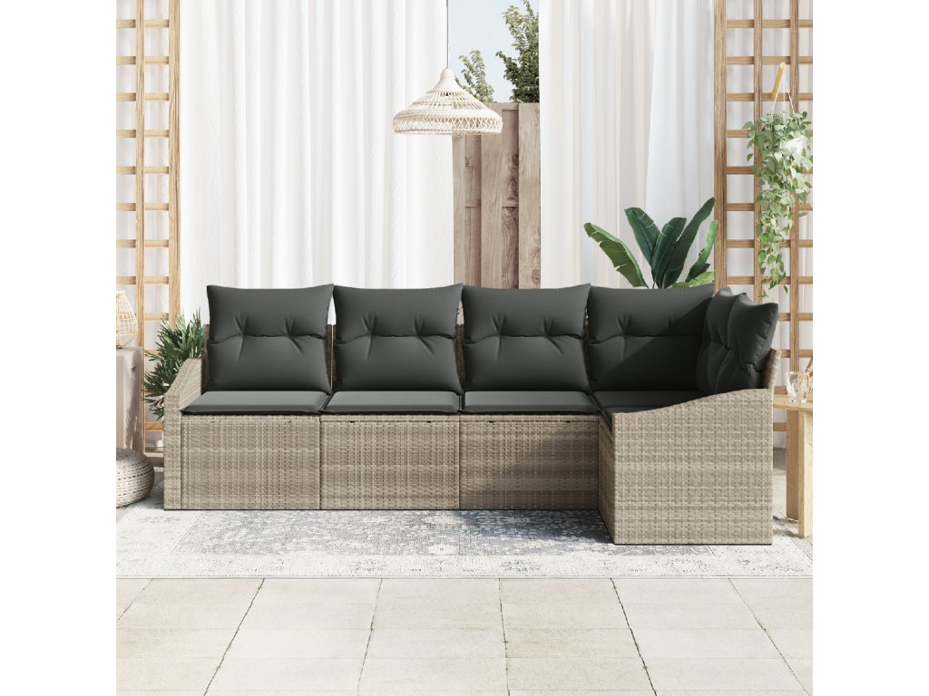 Set pohovek s polštářem s úložištěm 5 pcs Světle šedá polyratan