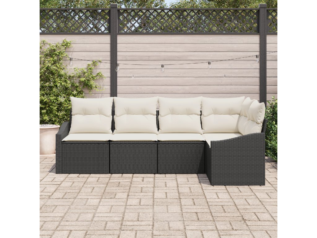 Set pohovek s polštářem 5 pcs Černá a krémová polyratan