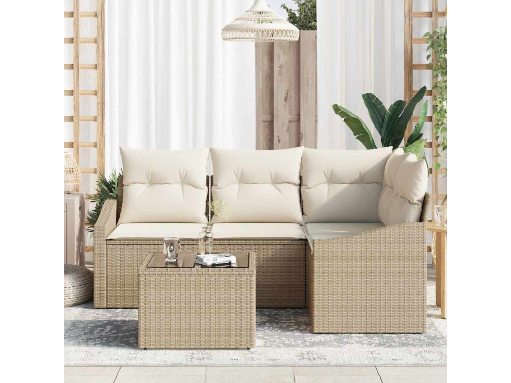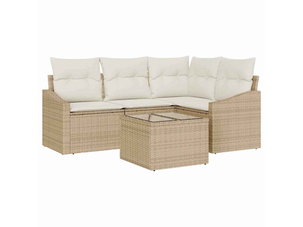 Set pohovek s polštářem 5 pcs Béžová a krémová polyratan