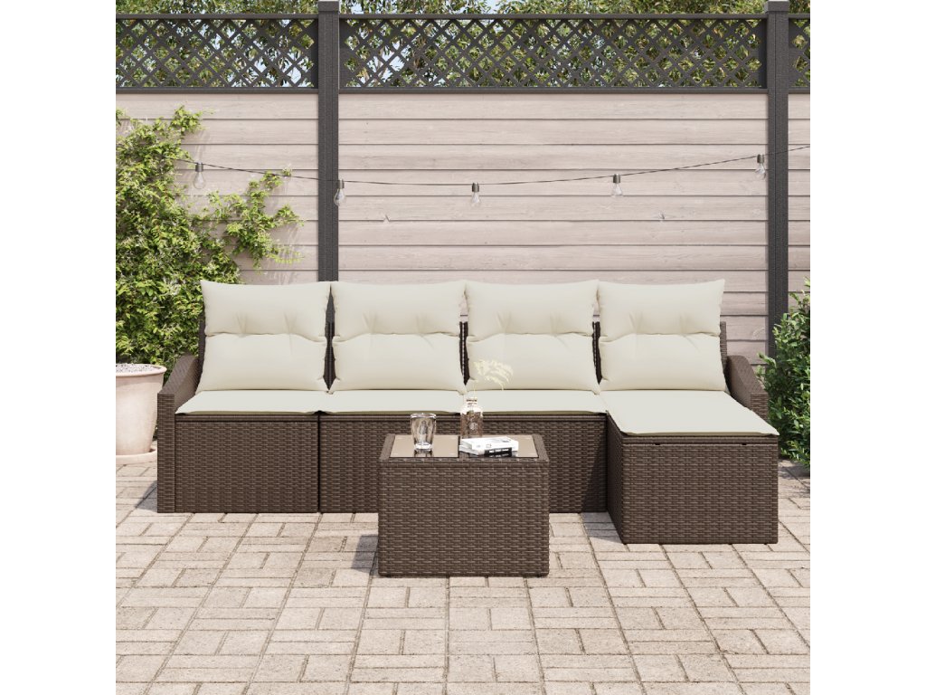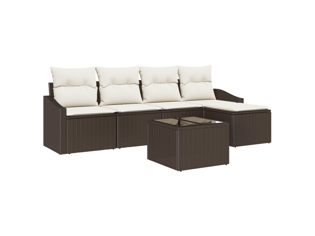 Set pohovek s polštářem 6 pcs Hnědá a krémová polyratan