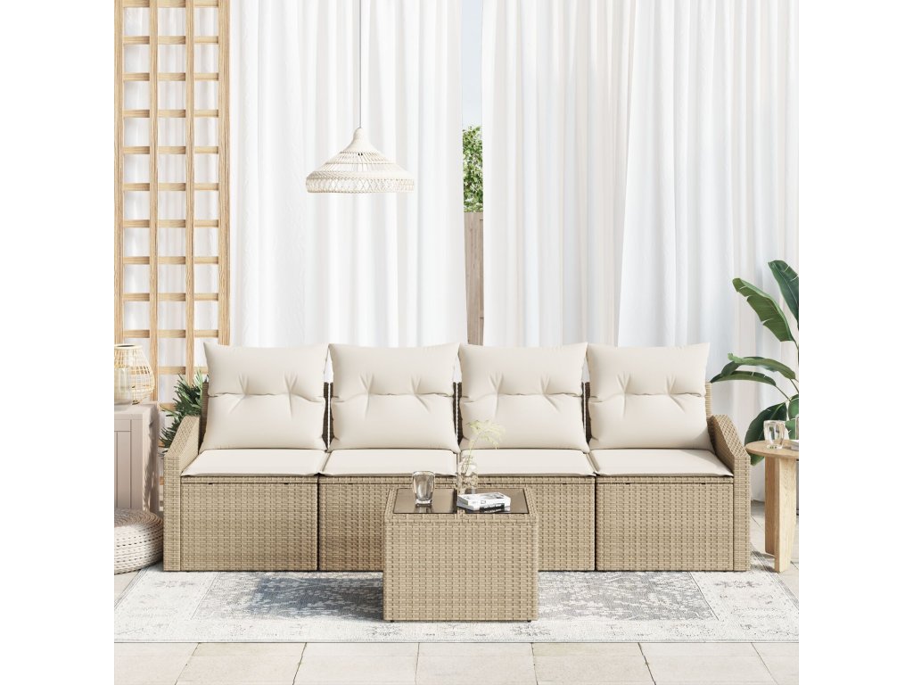 Set pohovek s polštářem 5 pcs Béžová a krémová polyratan