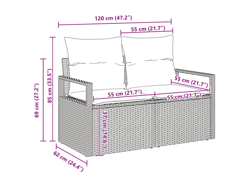 Tento zahradní pohovkový set je skvělou kombinací stylu a funkce pro váš venkovní prostor. S moderním vzhledem má čisté linie a málo zdobení, což vytváří hladký a sofistikovaný dojem ideální pro každou zahradu či terasu. Je dost prostorný na sezení a relaxaci, což se skvěle hodí pro hosty nebo na klidný večer. Díky svému trendy tkanému designu se skvěle hodí do různých venkovních stylů.
