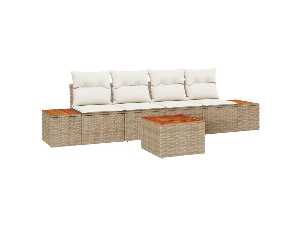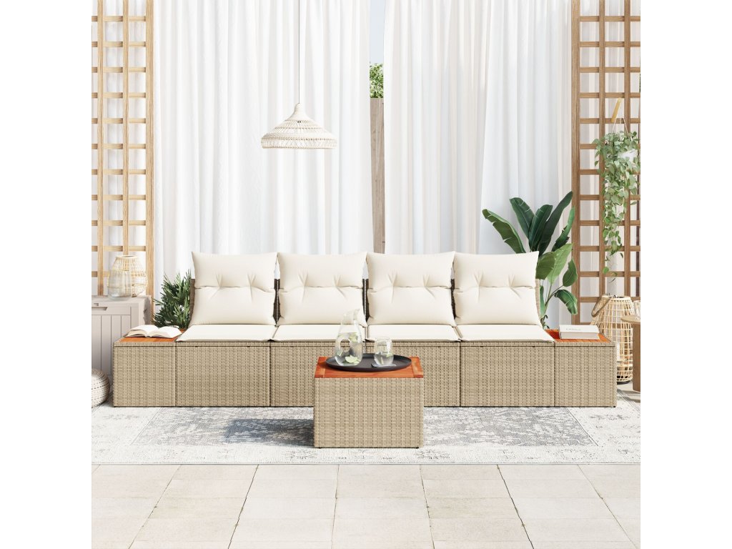 Sada zahradních pohovek s polštářem 5 pcs Béžová Poly ratan