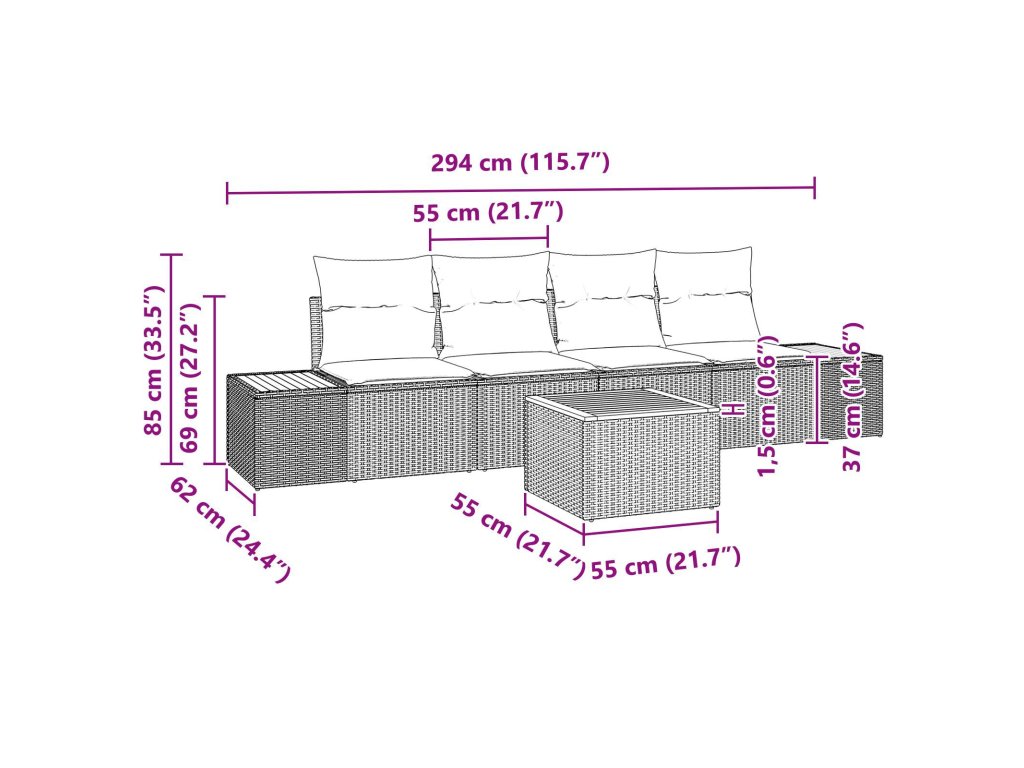 Tento moderní zahradní pohovkový set vyniká elegantním, čistým designem. Je perfektní pro zahrady a terasy a skvělý pro ty, co mají rádi jednoduchý styl a praktičnost. Nabízí příjemný zážitek venku, ideální na jaro nebo léto, a skvěle doplní jakýkoliv prostor na venkovním obývání.