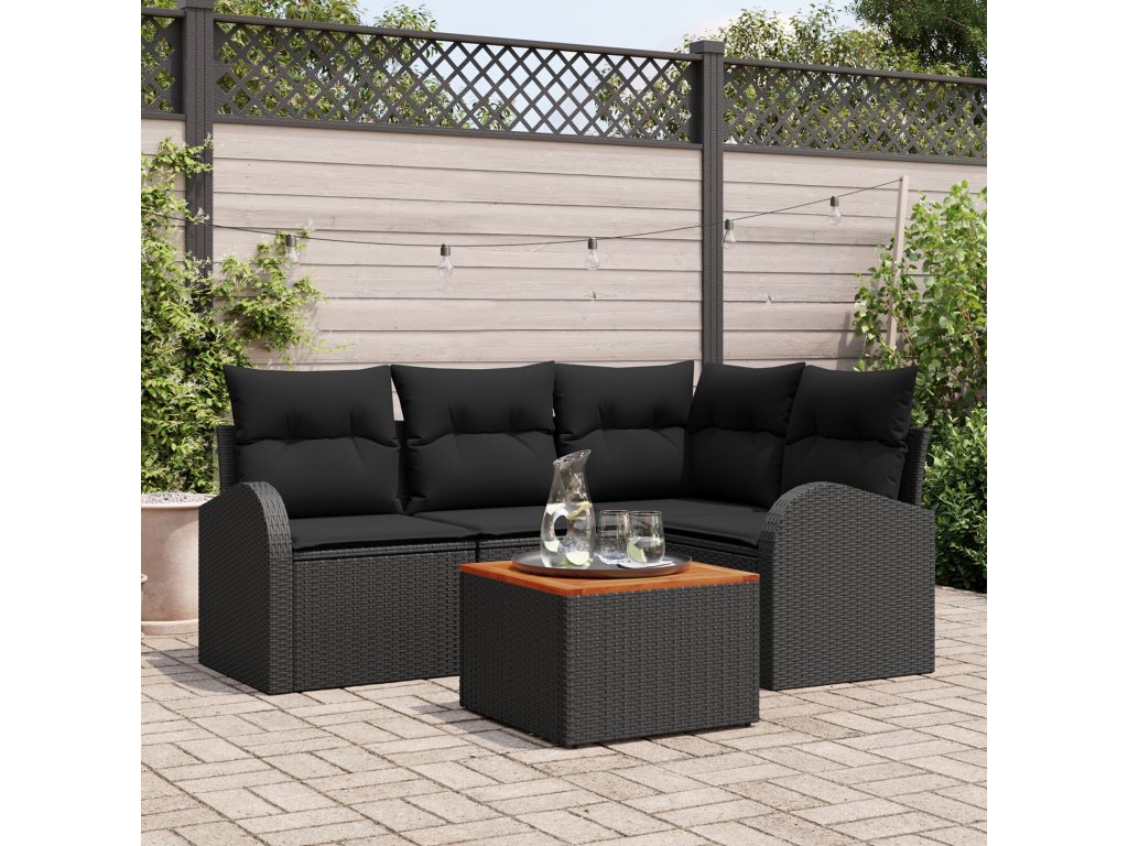 Sada zahradních pohovek 5 pcs Černá Poly ratan
