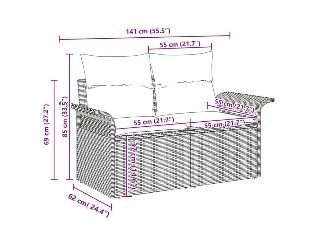 - Odolný poly ratan: Sedací set je vyroben ze syntetického poly ratanu. Tento materiál je vybrán pro svou skvělou kvalitu a UV odolnost, což zaručuje trvanlivé barvy a texturu i pod horkým sluncem. Povětrnostní odolnost poly ratanu dělá z tohoto setu spolehlivou volbu pro dlouhé venkovní užívání. Je to praktické a vypadá to pěkně, doplňuje zahradní prostředí svým tkaným vzhledem.